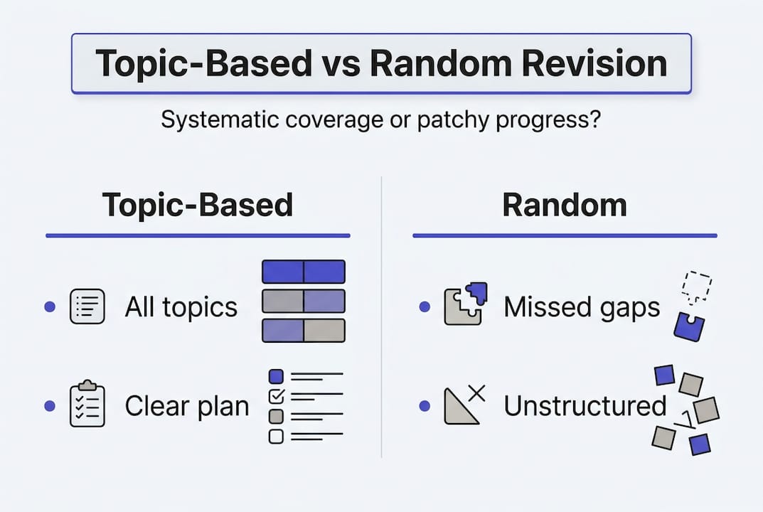 Topic-based revision isn't just a preference. It's a measurably more effective strategy. The structure itself does part of the work for you, ensuring you can't accidentally skip a topic two weeks before the exam.