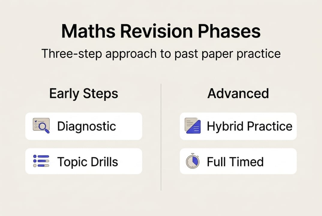 Having gathered all resources, the next stage is structuring your practice using a proven phased approach. Without a clear plan, it is easy to drift between papers without making real progress. A three-phase structure keeps your revision purposeful from start to finish.